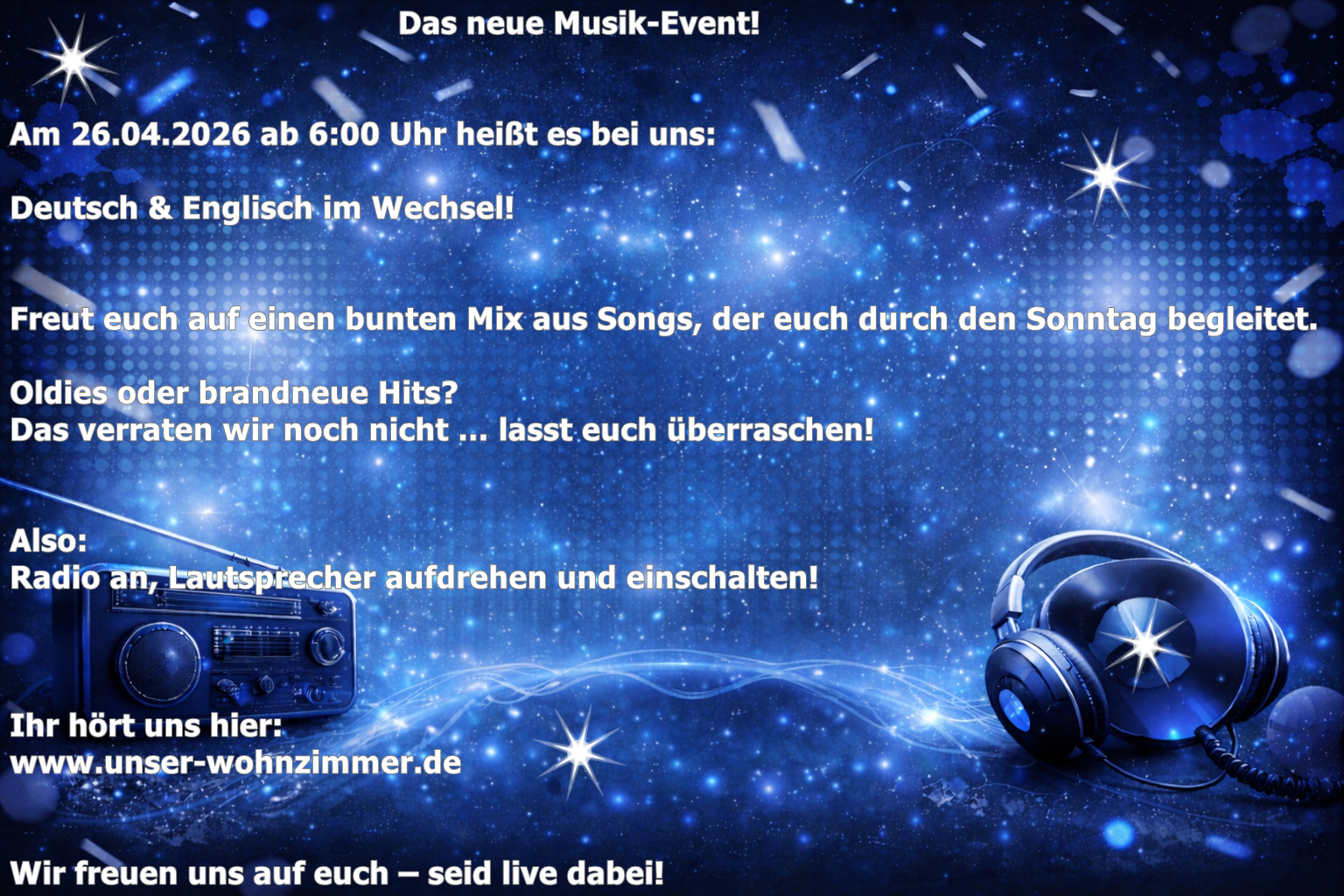 ::: HERZLICH WILLKOMMEN HIER IN ::: Unser Wohnzimmer – Ein Radio zum Wohlfühlen! Viel Spaß beim Zuhören 🎶